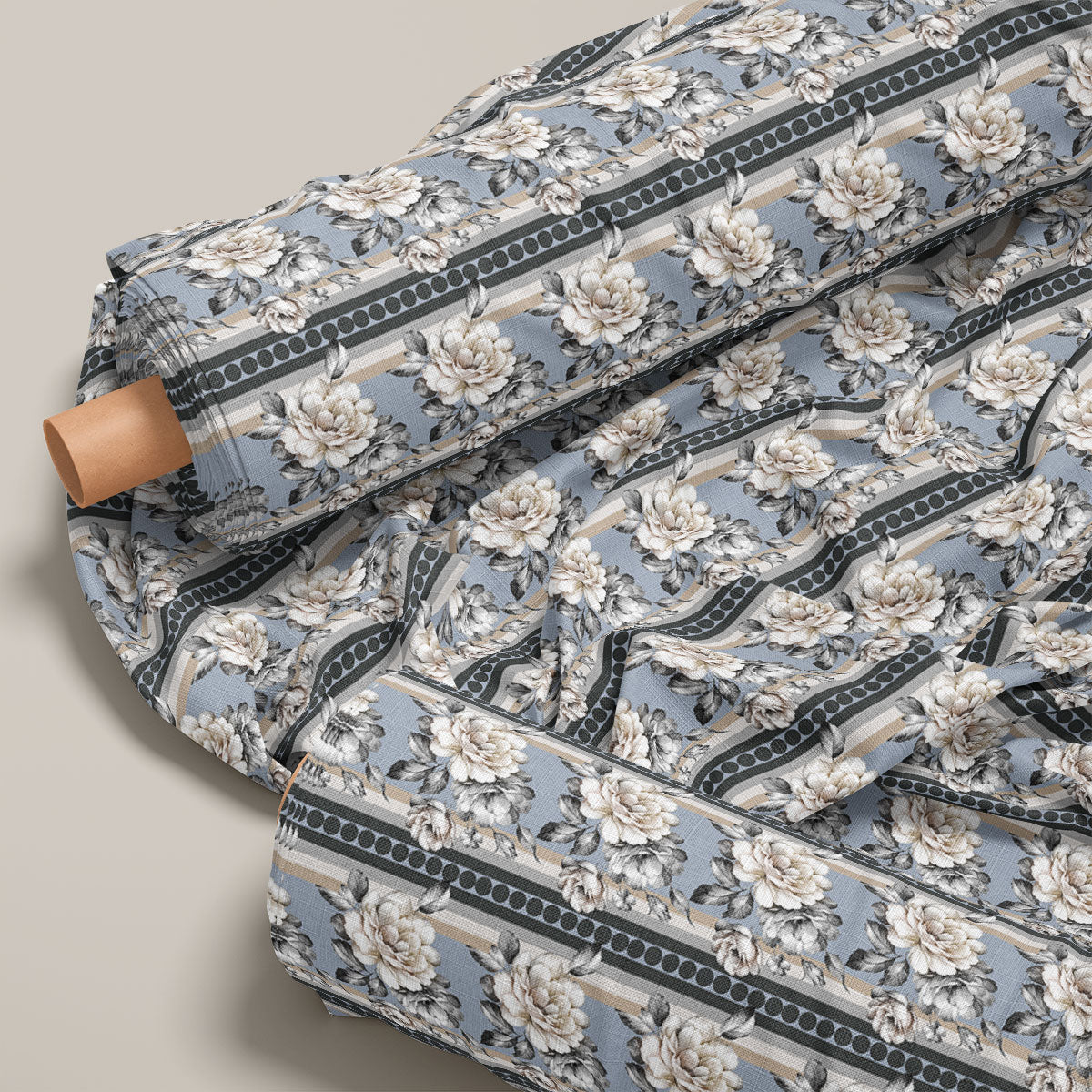 Medium Taupe and Jet Grey Floral Print - Cotton Blend / 36