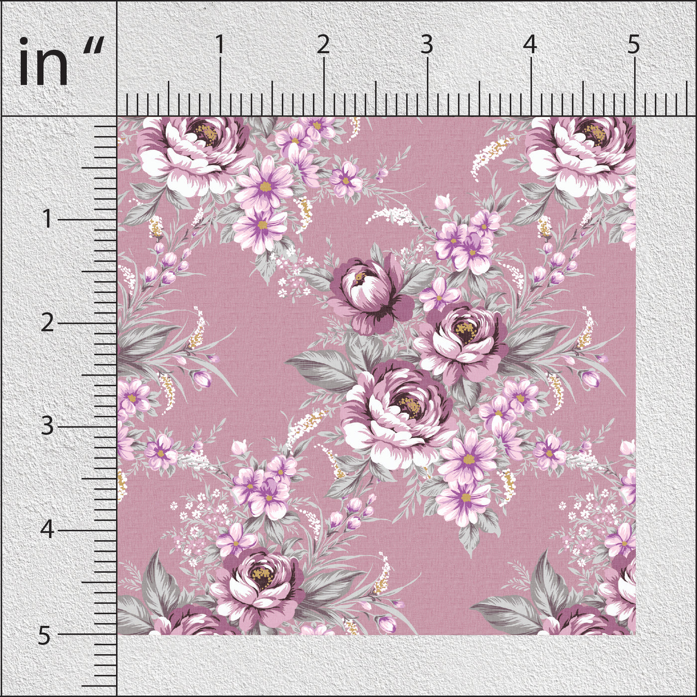 Lipstick Pink Vintage Rose Floral Print - Cotton Blend / 58
