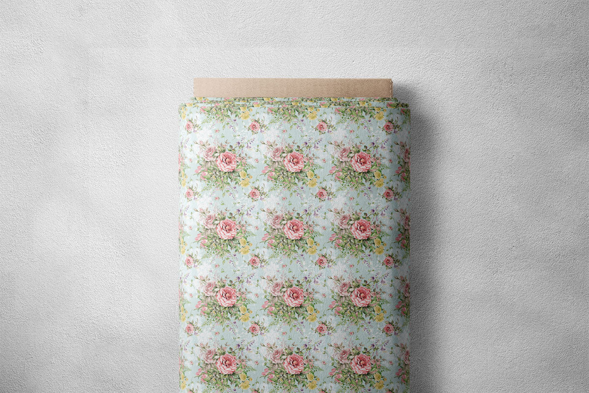 Thistle Green Rose Floral Print - Cotton Blend / 58