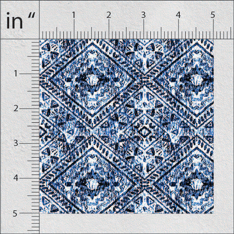 Dark Green Blue Pattern Geometric Print - Cotton Blend / 36