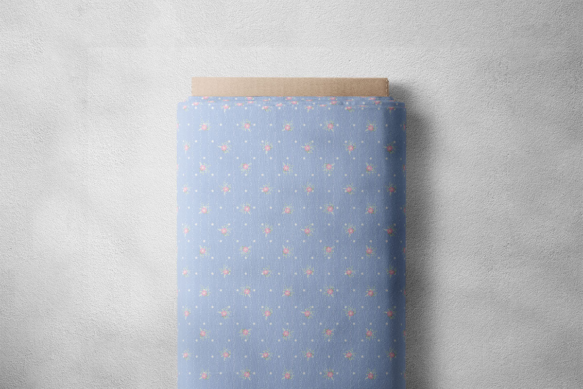 Light Grey Blue Daisies Floral Print - Cotton Blend / 36