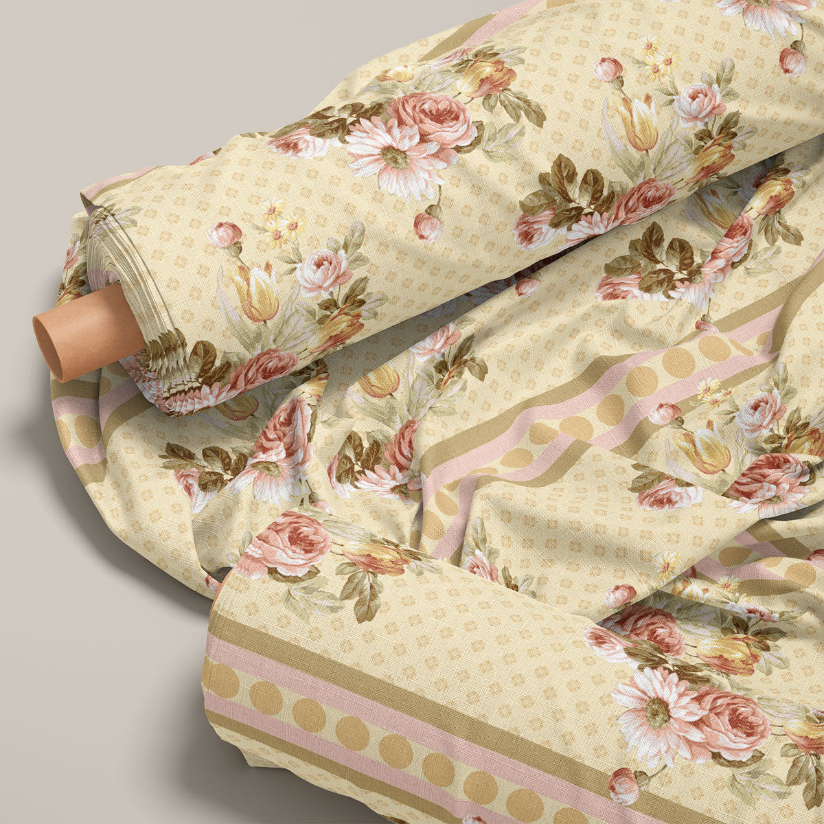Soft Peach Vintage Roses Floral Print - Cotton Blend / 36