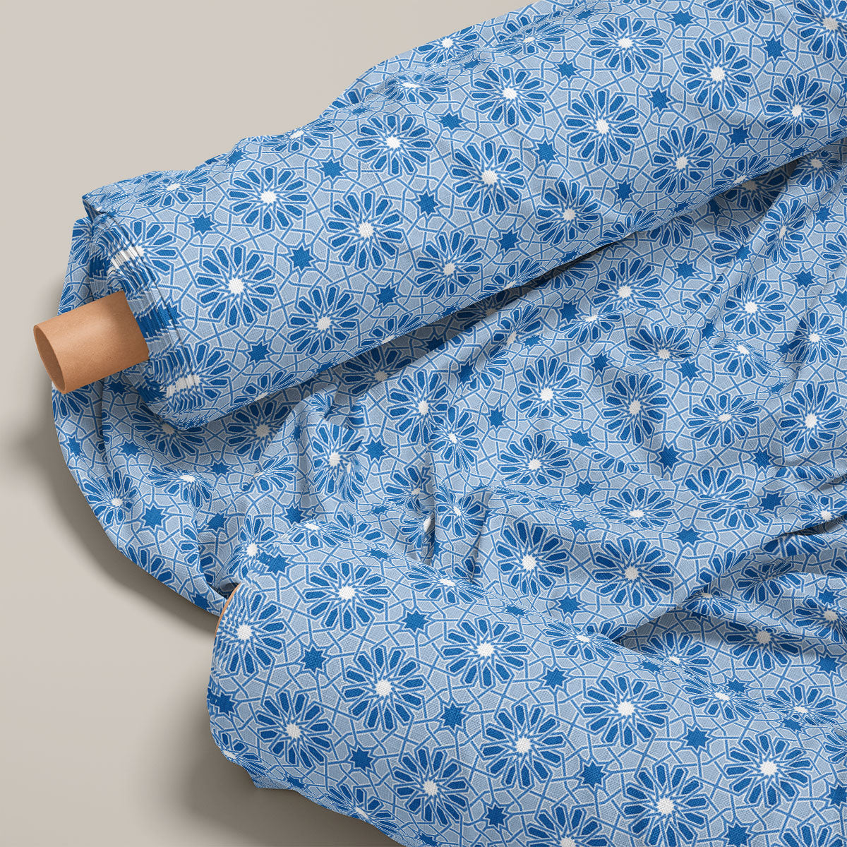 Kashmir Blue And Moon Mist Pattern Geometric Print - Cotton Blend / 36