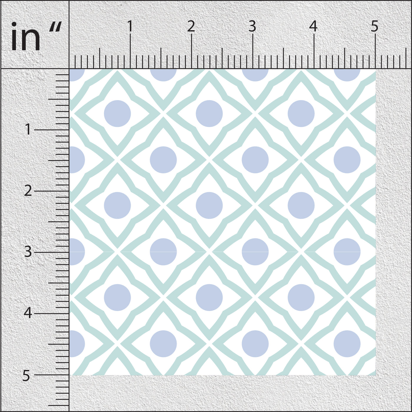 Milk White And Coral Blue Pattern Geometric Print - Cotton Blend / 36