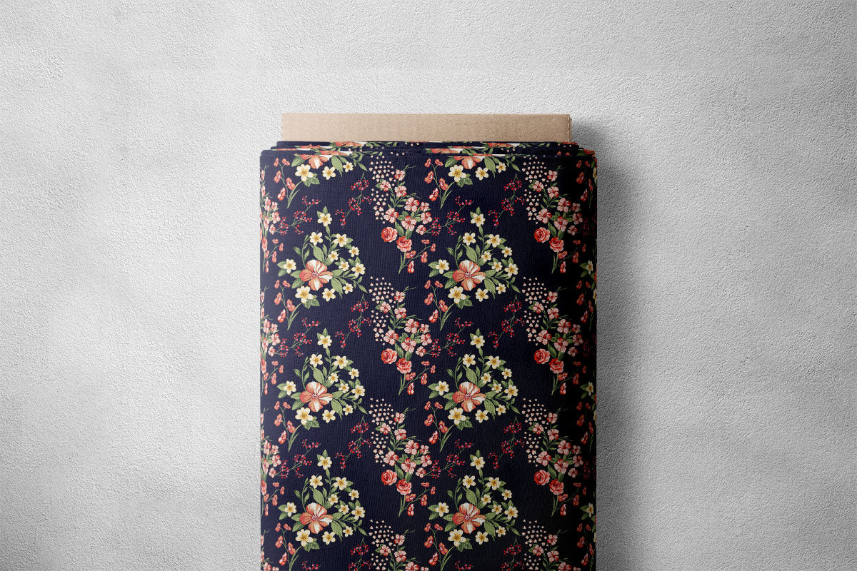 Navu Blue Rose Floral Print - Cotton Blend / 36