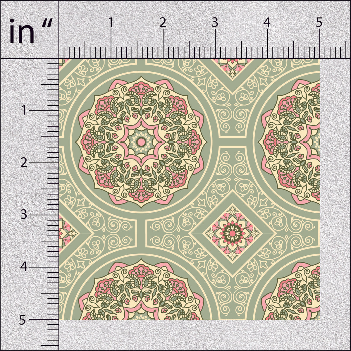 Pale Olive Oriental Design Geometric Print - Cotton Blend / 36