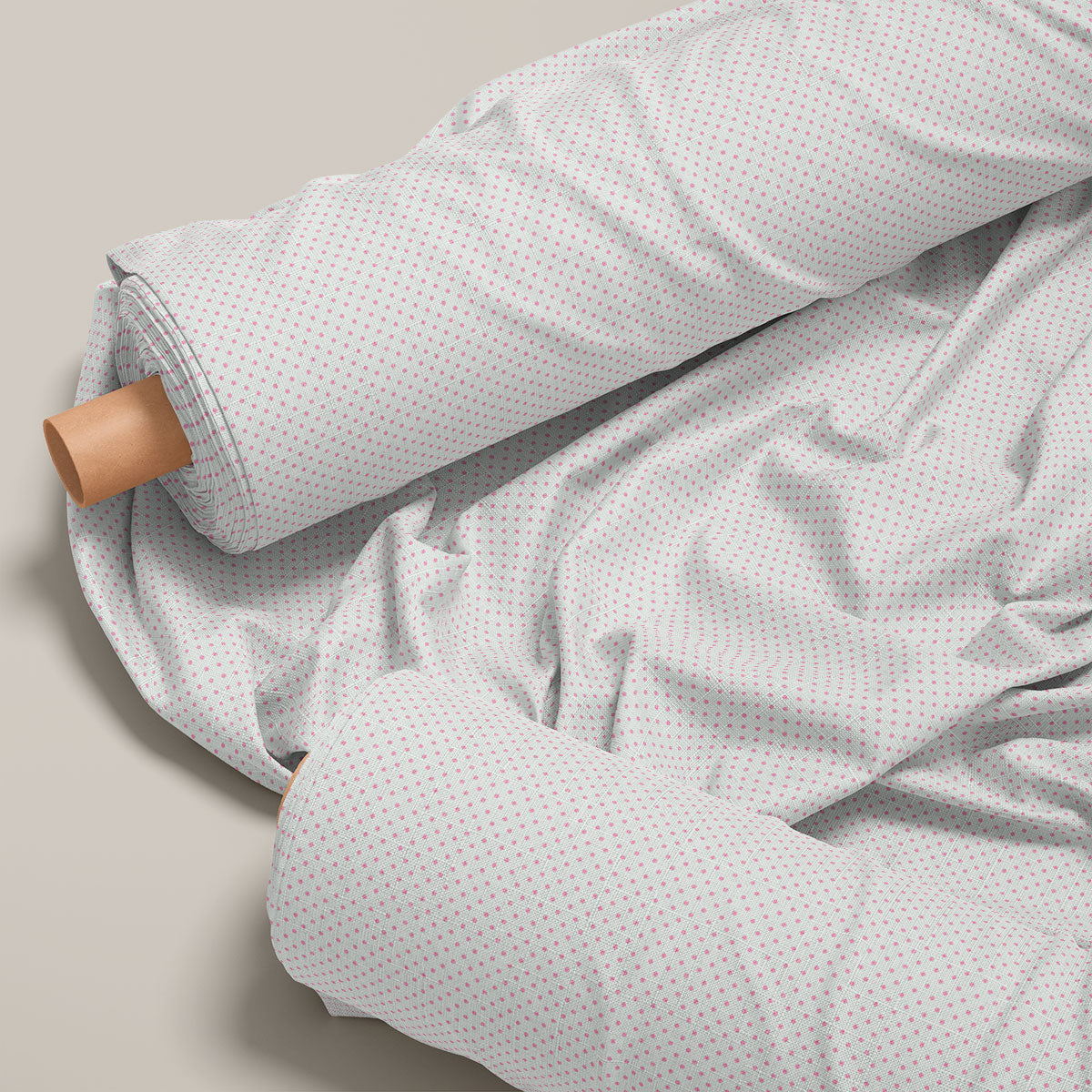 Silver Sand And Bashful Pink Polka Dots Print - Cotton Blend / 36