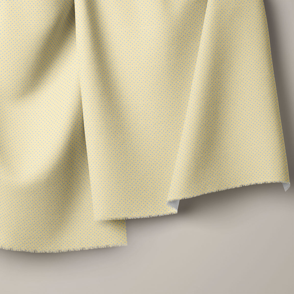 Tan And Metallic Blue Polka Dots Print - Cotton Blend / 36